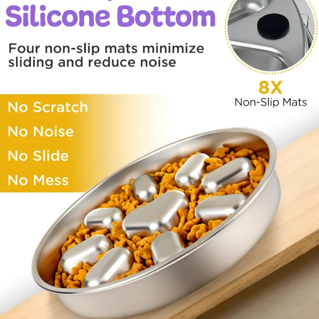 Crafted from premium stainless steel, this slow feeder bowl is built to last. Its sturdy construction resists chewing and scratching, ensuring long-term durability. The non-slip base keeps the bowl securely in place, minimizing mess and spillage, even for the most enthusiastic eaters. Measuring approximately 9.06 x 8.46 x 1.38 inches and weighing just 9.4 ounces, it offers a practical, compact design suitable for every household with dogs.