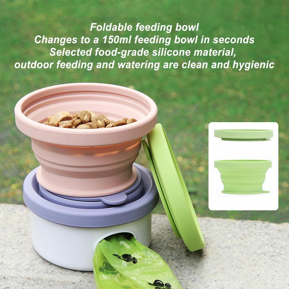 What makes this product special is its ability to do more than just hold food. It’s an all-in-one solution designed with both convenience and practicality in mind. No more carrying separate containers for snacks, bowls, and poop bags—this single compact item does it all. Whether you’re spending a day outdoors or going on a long journey, this travel bowl ensures your pet stays happy, hydrated, and well-fed without the mess.