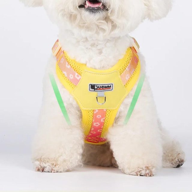 Not only does this set combine style, comfort, and safety, but it’s also designed with your pet’s well-being in mind. The breathable mesh allows for better airflow, preventing your dog from overheating during outdoor activities. The vibrant color block design stands out and adds a touch of personality to your dog’s look. Plus, the adjustable fit ensures that it fits just right, keeping your pet safe and comfortable on every walk.