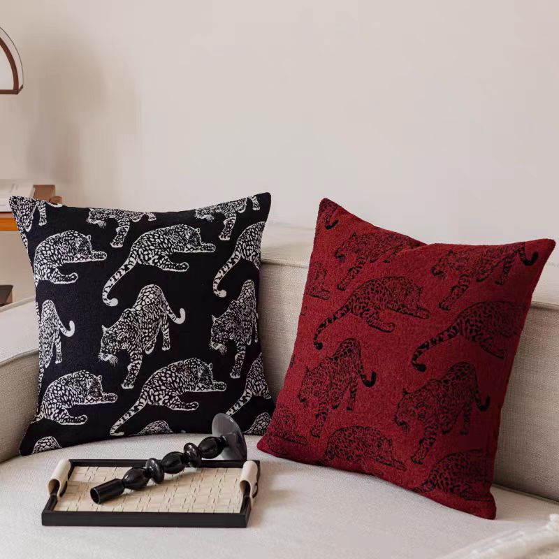 Add a touch of sophistication to your living space with our Double-Sided Leopard Jacquard Cushion Cover. This luxurious pillowcase features a stunning design in high-end black, white, and wine red tones, making it the perfect accent for sofas, chairs, and more. Crafted for both beauty and comfort, this cushion cover transforms any room into a stylish sanctuary!