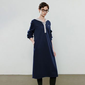 Women’s Winter Asymmetric Loose Contrast Color Hoodie Dress with Embroidery