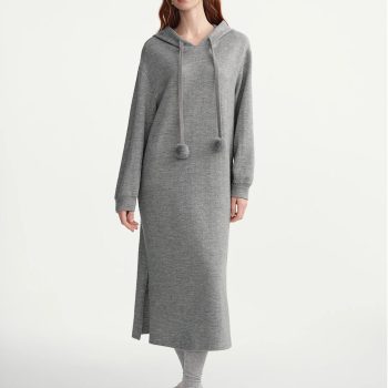 Winter Pom Pom Hooded Knit Dress with Drawstring Waist