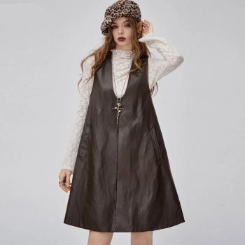 Winter Loose PU Leather Vest Dress for Women