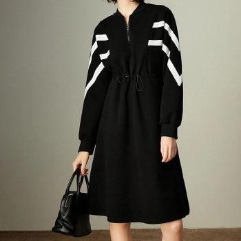 Winter Striped Sporty Waist-Cinched Midi Dress for Women