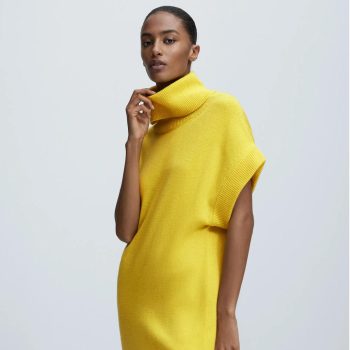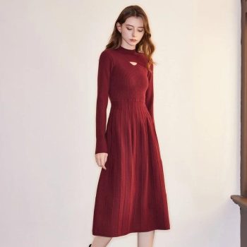 Winter Turtleneck Hollow Knit Midi Dress for Women