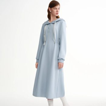 Winter Hooded A-Line Maxi Sweatshirt Dress for Women