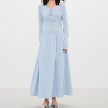 Elegant Knit Patchwork V-Neck A-Line Party Dress for Women