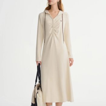 Plus-Size Women’s Winter Hooded Pleated Waist Dress – Casual & Flattering