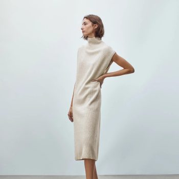 Minimalist Knit A-Line Winter Dress with Short Sleeves