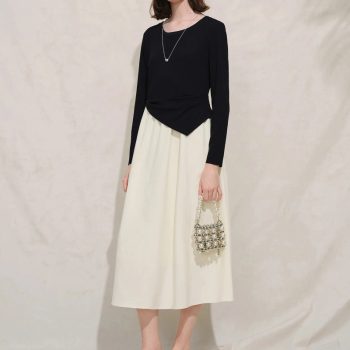 Women’s Romantic Color Block Knit Two-Piece Dress for Curvy Figures
