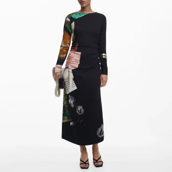 Desigual Black Printed Long Sleeve Dress – Women’s Viscose Elegance