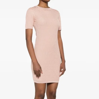 FENDI Monogram Mini Dress – Pink Round Neck Short Sleeve Cotton-Viscose Blend