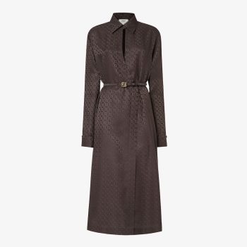 Fendi Brown FF Jacquard Silk Midi Shirt Dress with Matching Belt