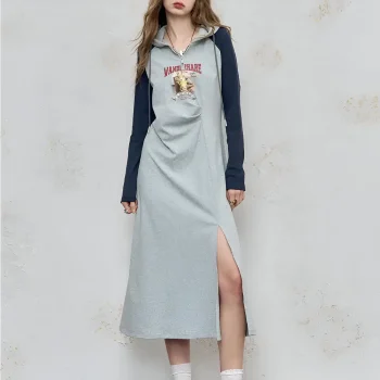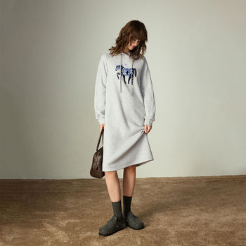 Women’s Winter Hooded Fleece Sweatshirt Dress with Horse Embroidery