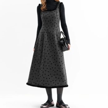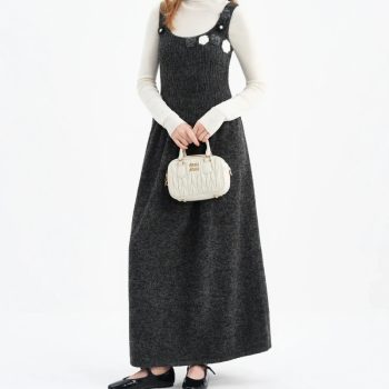U-Neck 3D Floral Knit Suspender Dress – Elegant Winter Midi