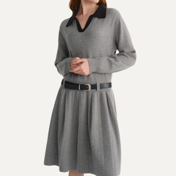Women’s Collar A-Line Mini Tee Dress with Waist Tie