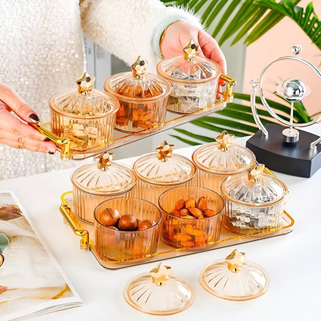 More than just a snack bowl, this piece doubles as a decorative accent that elevates your living room or dining area. The separate compartments make it ideal for entertaining guests, organizing different treats, or serving at family gatherings and festive occasions. The fitted lid helps maintain freshness while keeping dust away, making it both stylish and hygienic. Its smooth, modern lines and glossy finish create a luxurious look without the fragility of glass.