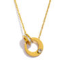Add a soft touch of shine to your look with this dual hoop pendant necklace, designed to balance modern simplicity with timeless beauty. Two perfectly polished hoops interlock to symbolize connection, harmony, and confidence, while a sparkling cubic zirconia stone catches the light with every movement. Crafted from high-quality stainless steel and finished with a rich PVD gold plating, this necklace offers lasting beauty you can enjoy day after day.