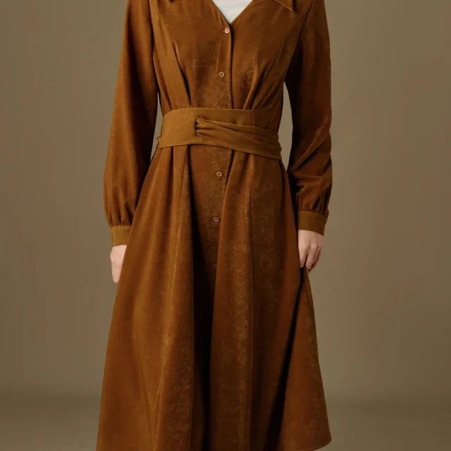 This winter dress stands out because it blends warmth, style, and comfort in one beautiful piece. It’s best used during the colder months when you want to look elegant without sacrificing comfort. The thoughtful construction—smooth velvet texture, structured twill weave, and a graceful profile—makes it special and suitable for various occasions. Slip into this winter essential and experience a combination of sophistication and softness that elevates your seasonal style.