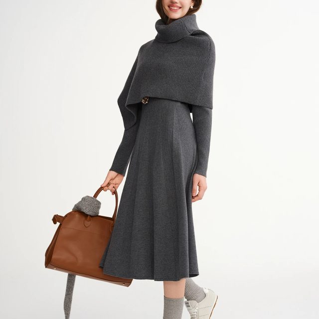 Unlike regular winter dresses, the cape layer adds visual interest and extra warmth without bulk. It’s a statement piece that feels practical and fashionable at the same time.