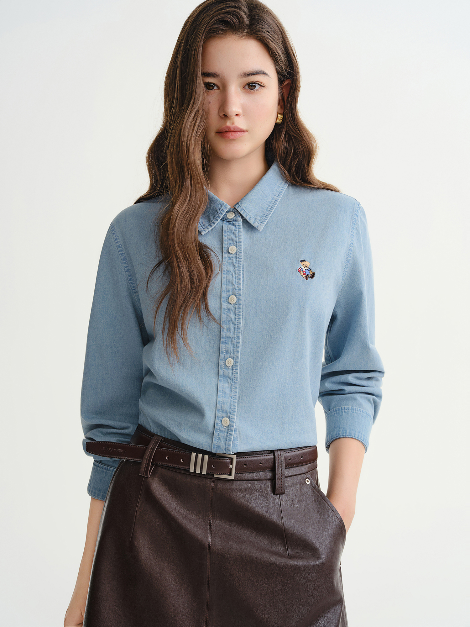 Embrace comfort and style with this charming plus-size women’s denim shirt. Designed with a distinctive bear embroidery detail, this shirt brings a playful twist to a classic American retro style. The relaxed, slimming fit and soft blended fabric ensure that you’ll feel as great as you look, whether you’re out for a casual outing or headed to the office.