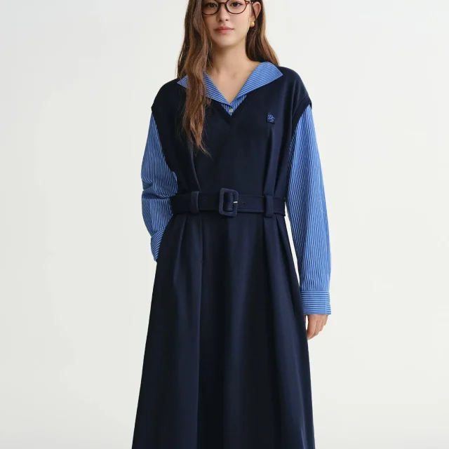 The turn-down collar, full-length sleeves, and mid-calf length give this dress a clean, classic look that pairs perfectly with boots, leggings, or your favorite warm layers. Whether you’re heading out for a casual day, relaxing at home, or running errands, this dress brings together ease and elegance effortlessly. Its striped pattern adds a touch of personality, making it more than just another winter basic — it’s a go-to wardrobe essential.