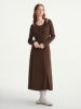 Step into the season with confidence in this beautifully crafted oat coffee two-piece layering dress. Designed to flatter your natural shape with a slim-fit profile, this winter essential combines comfort, sophistication, and a touch of retro charm. The soft knit fabric—made from a smooth blend of viscose, polyester, nylon, and spandex—offers medium stretch for a comfortable fit that moves with you. Its ankle-length silhouette and classic O-neckline create a timeless look that works perfectly for cooler months.