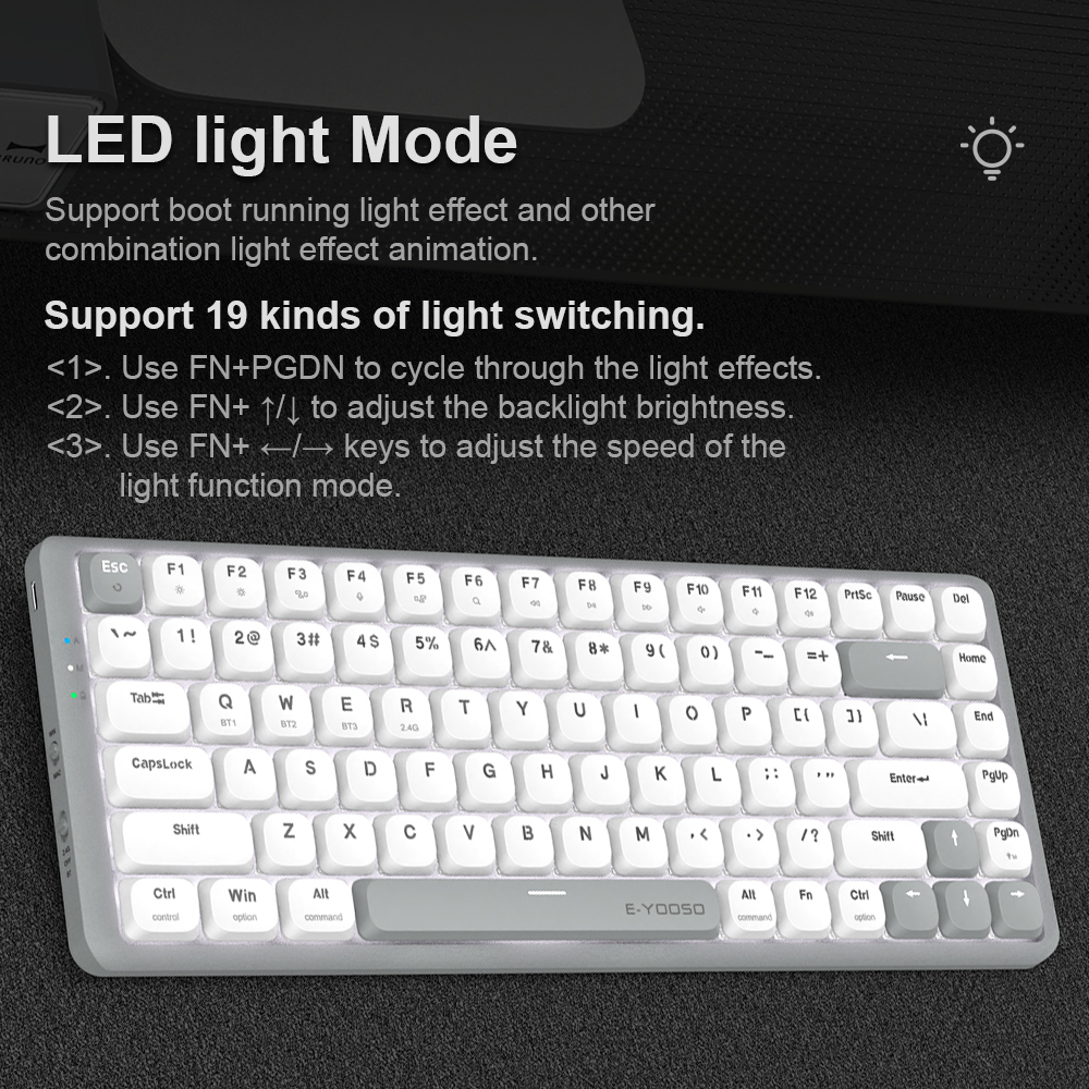 This keyboard stands out because it blends the satisfying performance of mechanical switches with the sleekness of a modern, lightweight design. It’s perfect for everyday work, long writing sessions, competitive gaming, and portable setups where both comfort and precision matter. If you want a keyboard that feels great, looks premium, and adapts to every device you use, this is the one to choose.