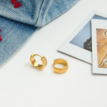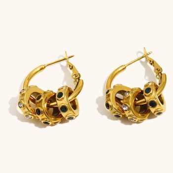 Gold Plated Zircon Hoop Earrings for Women – Stainless Steel, Waterproof