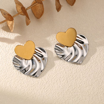 Two-Tone Heart Dangle Earrings in Polished Stainless Steel