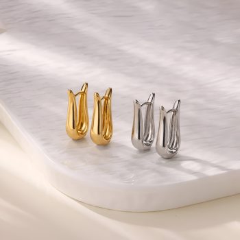 Gold Chunky Geometric U-Shape Hoop Earrings for Women