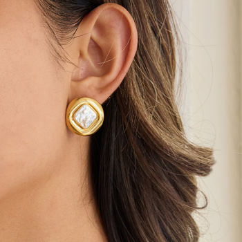 Matte Acrylic Pearl Stainless Steel Earstuds with PVD Gold Plating for Women