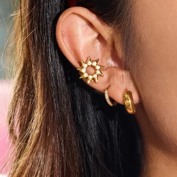 Elegant Sunburst Rhinestone Ear Cuff Earrings – 18K Gold-Plated