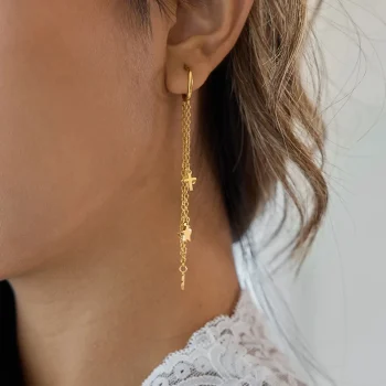 18K Gold Plated Star, Moon, Heart & Cross Tassel C-Shape Earrings