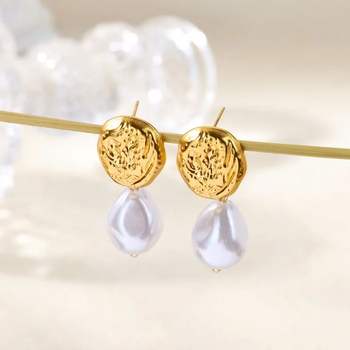 Gold Color Geometric Pearl Stud Earrings – Minimalist Jewelry for Women