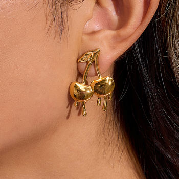 18K Gold Plated Liquid Melted Cherry Earrings – Romantic Women’s Jewelry