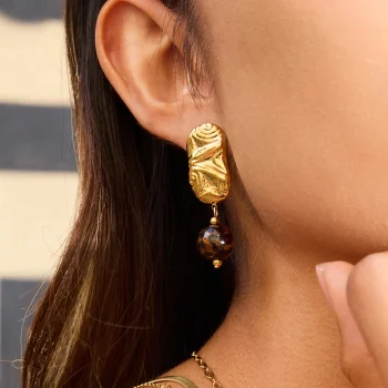 Vintage Leopard Print Resin Bead Spiral Earrings in 18K Gold Color