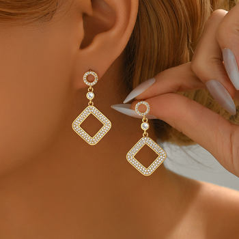 Elegant Square Pendant Hoop Earrings with Sparkling Cubic Zirconia