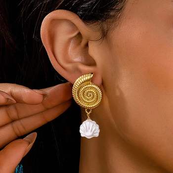 Gold Conch Pearl Starfish Drop Earrings for Women