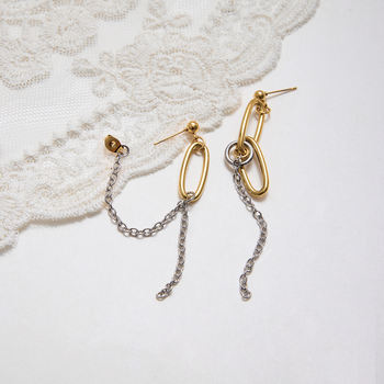 Stainless Steel Geometric Asymmetric Tassel Drop Earrings for Women