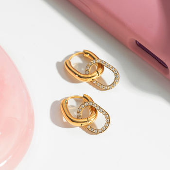 Trendy Double Circle Earrings with White Zircon – 18K Gold-Plated Stainless Steel
