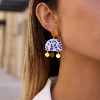 Vintage Blue and White Porcelain Geometric Pendant Earrings – 18K Gold Plated Stainless Steel