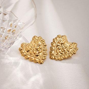 Trendy Heart Textured Gold-Plated Stainless Steel Stud Earrings for Women