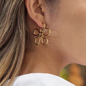 Classic Minimalist Flower Hollow Stud Earrings 18K Gold Plated