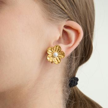 Sweet Pearl Inlay Flower Clip-On Earrings for Women