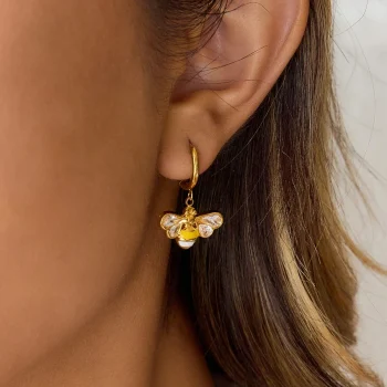 Sweet Zircon Inlay Bee Stud Earrings in 18K Gold Plated Stainless Steel