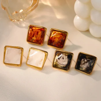 18K Gold Plated Stainless Steel Square Earrings