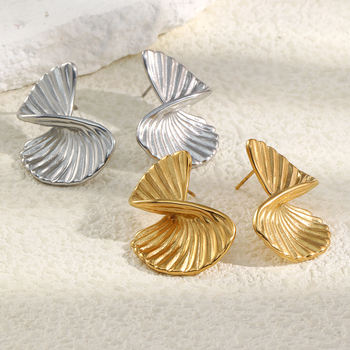 Rotating Twisted Fan Shaped Stainless Steel Women’s Earrings