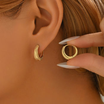 Mixed Color Textured Circular Statement Earrings in Gold-Tone Stainless Steel
