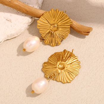 Waterproof Freshwater Pearl Gold Stud Earrings for Women